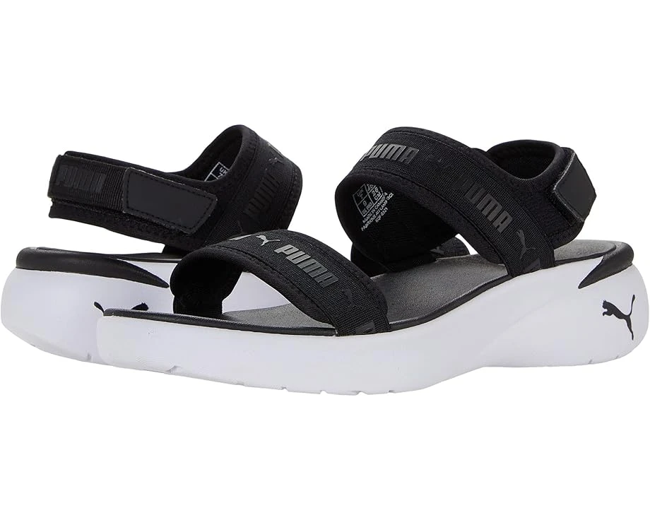 Perfectly paired with your favorite leggings or a flowy maxi dress, the PUMA® Sportie Sandal feature an impact-absorbing platform sole and adjustable hook-and-loop heel strap.SKU: #9516077Open-toe shoe with textile upper, lining, and insole.Logo across straps and at heel.Synthetic platform wedge sole.Imported.Product measurements were taken using size 9, width B – Medium. Please note that measurements may vary by size.Measurements: